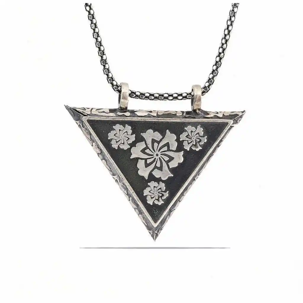 Gümüş Üçgen İçi Açılabilen Çiçek Muskalık Kolye