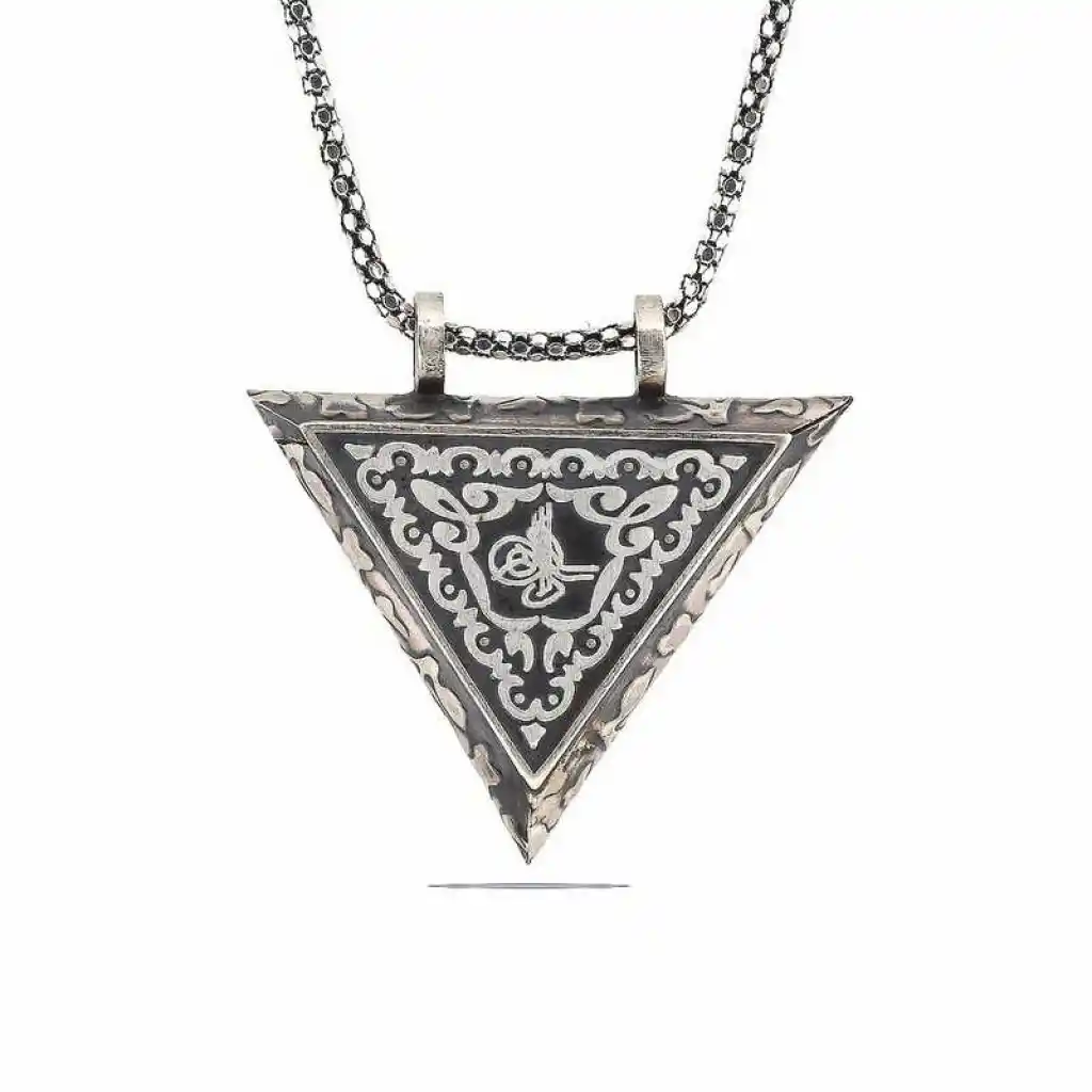 Gümüş Üçgen İçi Açılabilen Tuğra Muskalık Kolye