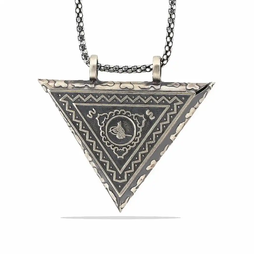 Gümüş Üçgen İçi Açılabilen Tuğra Muskalık Kolye
