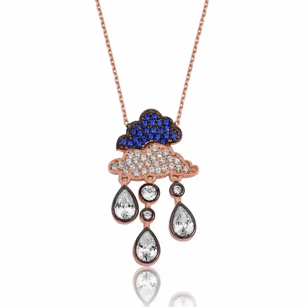 Kolye; doğum günü hediyesi, sevgililer günü hediyesi veya annelere hediye olarak özel günlerde tercih edilebilecek mükemmel bir seçenektir. Bu anlamlı ve şık kolye; 925 ayar gümüşten imal edilmiştir. Bu bayan gümüş kolye üzerine rose kaplama yapılmıştır. Rose kaplama yapılan tüm kolyeler parlaklığını uzun süre muhafaza eder, gümüşü pembe renge dönüştürür ve oksitlenmeyi geciktirir. Zincir boyu ortalama 45 cm"dir. Yağmur bulutu bayan kolye üzerinde bulunan taşlar zirkondur. Tüm gümüş kolyelerde olduğu gibi bu gümüş yağmur bulutu bayan kolye de el emeği ile üretilmiştir. Gümüş ve değerli taşlar nedeniyle ürün ağırlığında ± %10 sapma olabilmektedir.