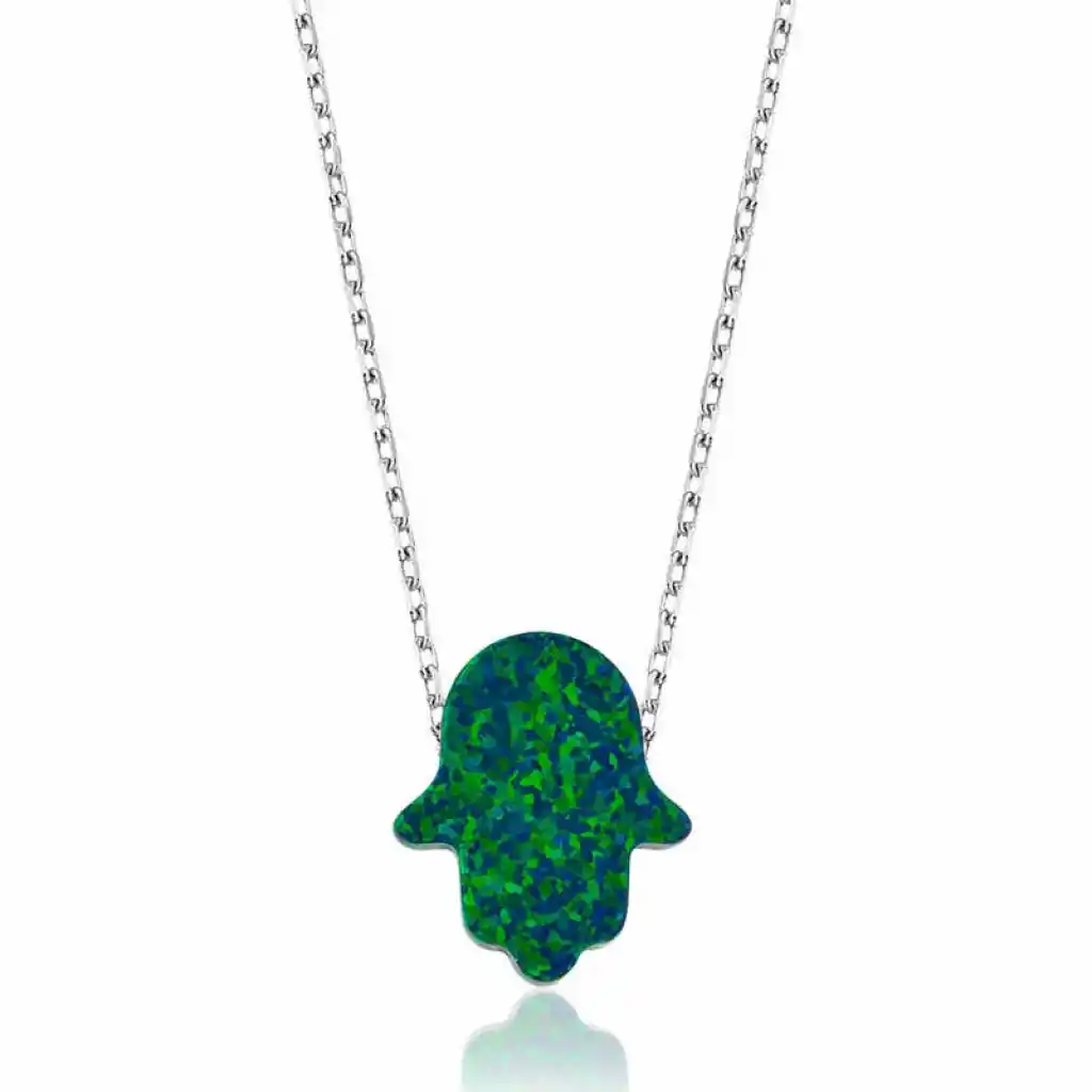 Gümüş Yeşil Opal Fatma Eli Bayan Kolye
