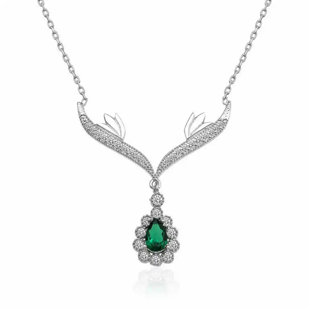 Yeşil damla taşlı madalyon kolye her sezon rahatlıkla kullanılabilecek kolye modelleri arasında yer alıyor. Doğadan ilham aınarak tasarlanmış bu kolye ile sevdiğiniz kadına duyduğunuz aşkı ve tutkuyu en iyi şekilde ifade edebilirsiniz. Bu şık kolye; doğum günü hediyesi, sevgililer günü veya özel günlerde tercih edilebilecek mükemmel bir seçenektir. Kolye; 925 ayar gümüşten imal edilmiştir. Gümüş üzerine rodyum kaplama yapılmıştır. Diğer kolyelerde olduğu gibi gümüş yeşil taşlı madalyon kolye de el emeği ile üretilmiştir. Gümüş ve değerli taşlar nedeniyle belirtilen ortalama ürün ağırlığında ± %10 sapma olabilmektedir.