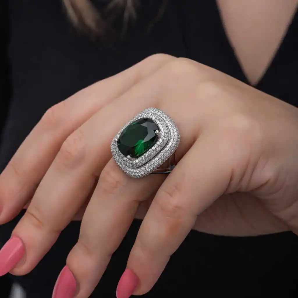 Gümüş Yeşil Zirkon Taşlı Kadın Yüzük