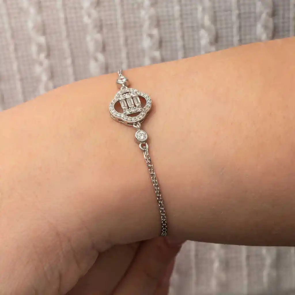 Gümüş Yonca Baget Taşlı Kadın Bileklik