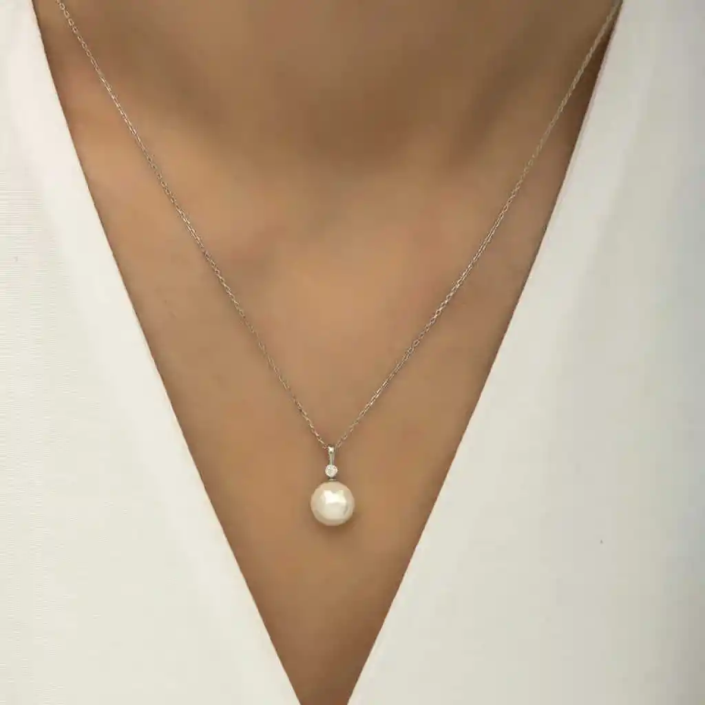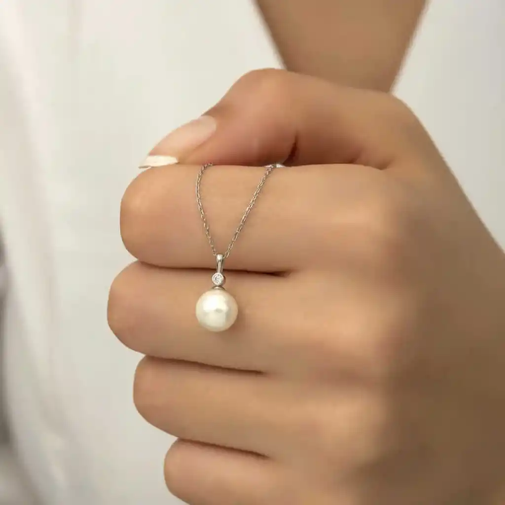 Gümüş Yuvarlak İnci Bayan Kolye