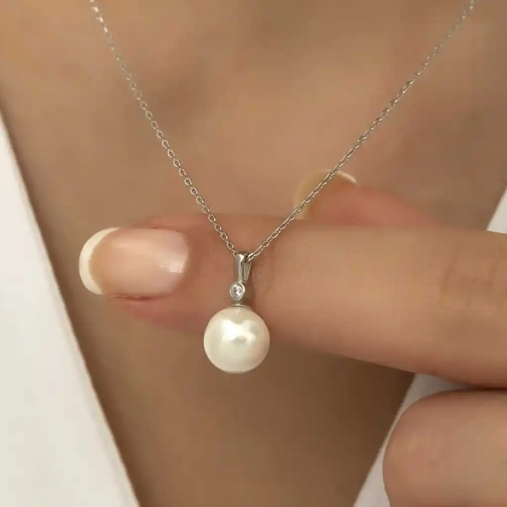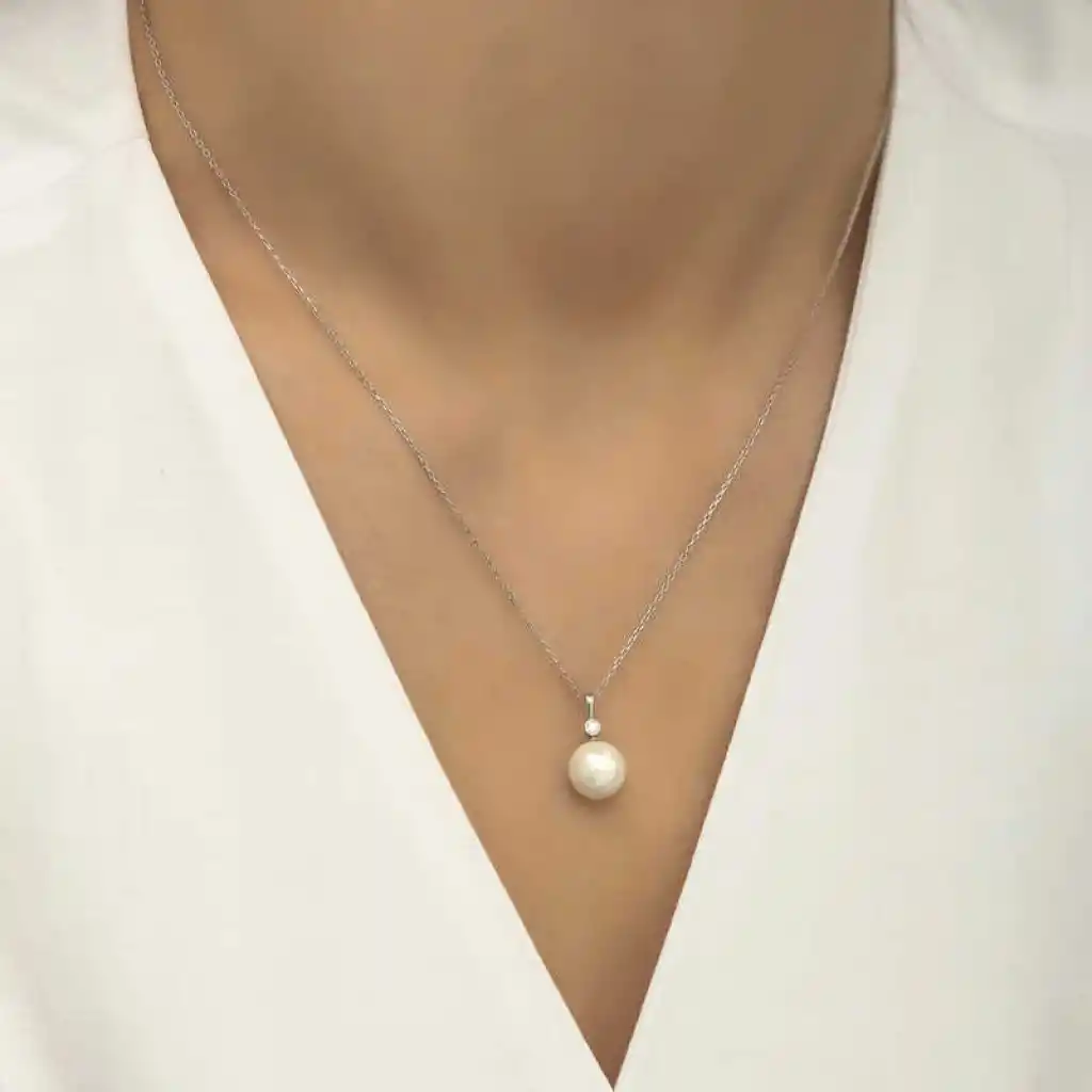 Gümüş Yuvarlak İnci Bayan Kolye