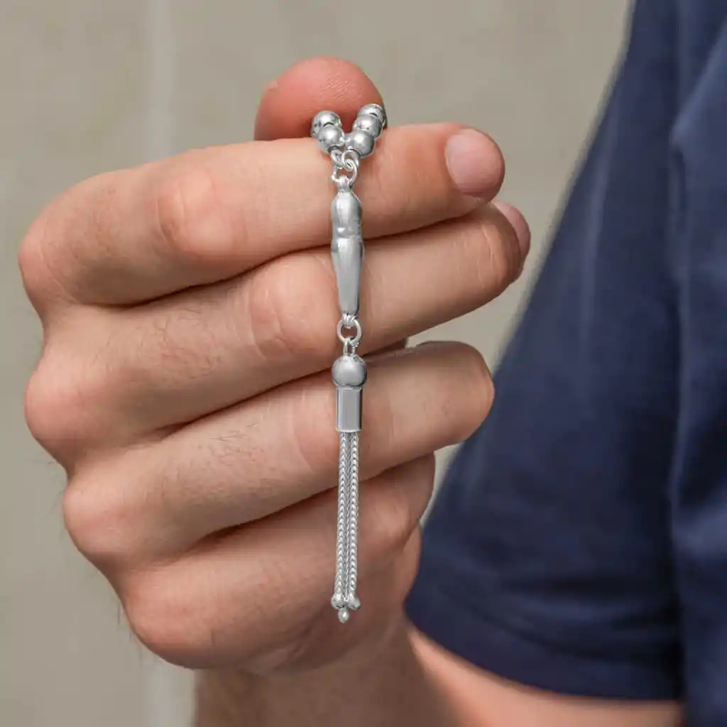 Gümüş Yuvarlak Küçük Boy Erkek Tesbih