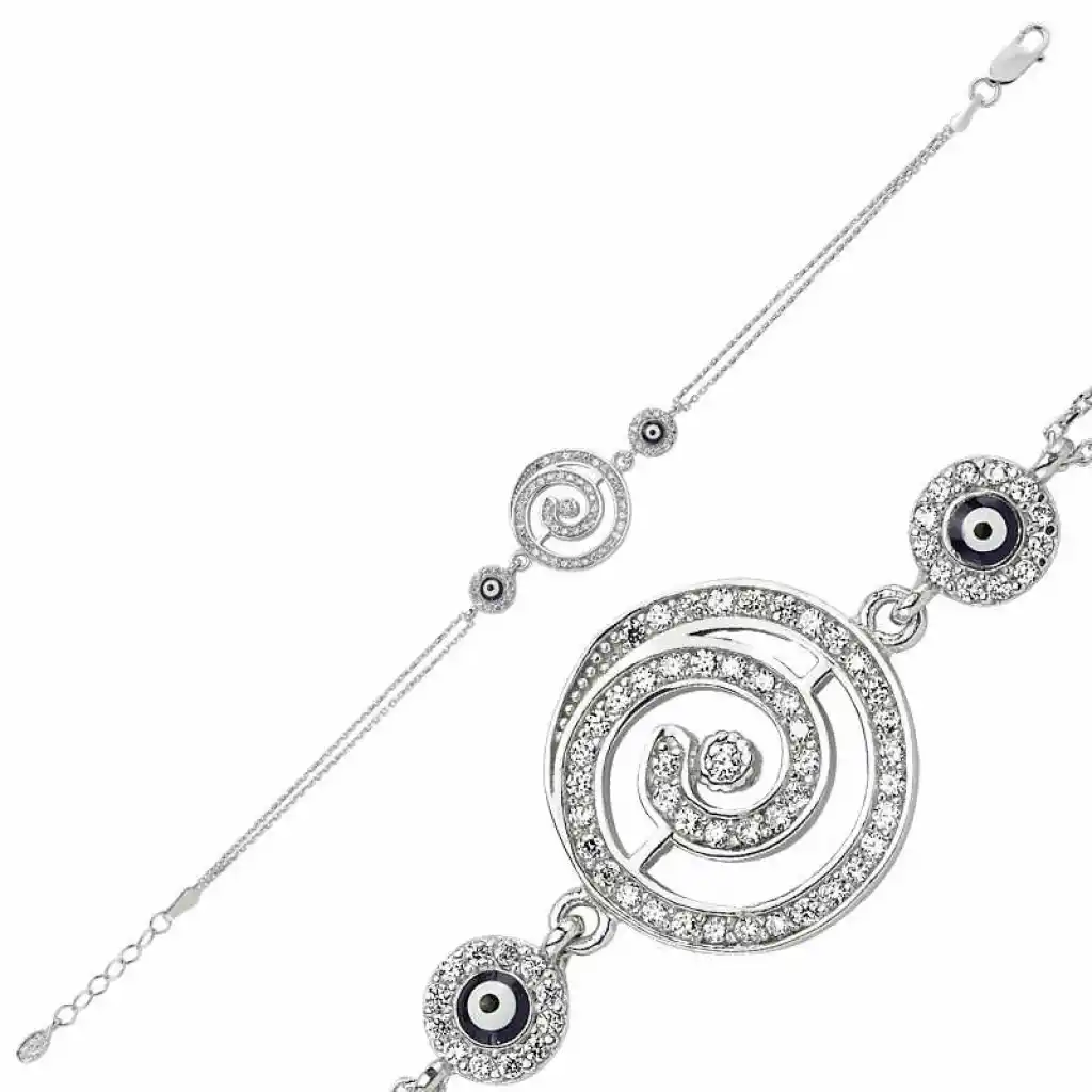Gümüş Yuvarlak Nazarlı Bayan Bileklik