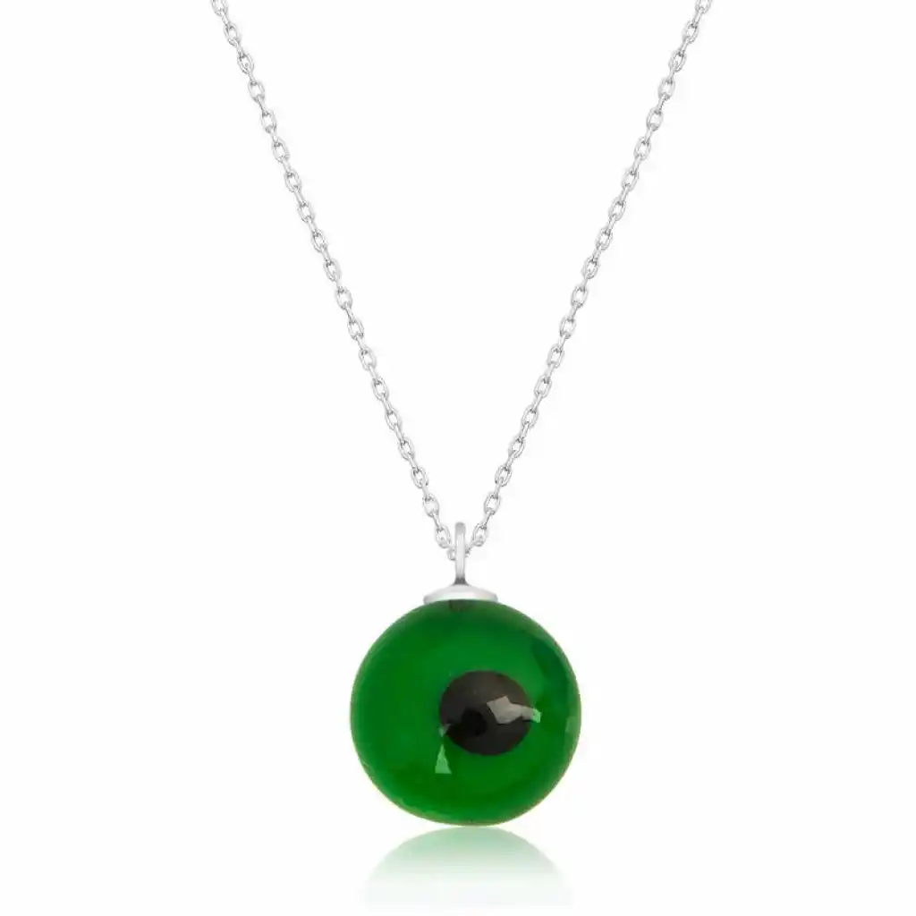 Gümüş Rodyum Yeşil Yuvarlak Camgöz Nazar Bayan Kolye