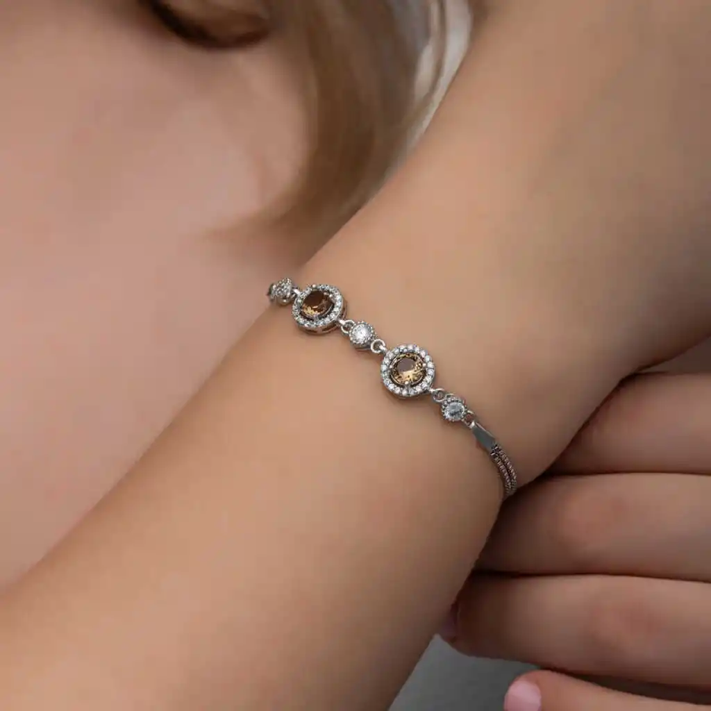 Gümüş Yuvarlak Zultanit Taşlı Kadın Bileklik