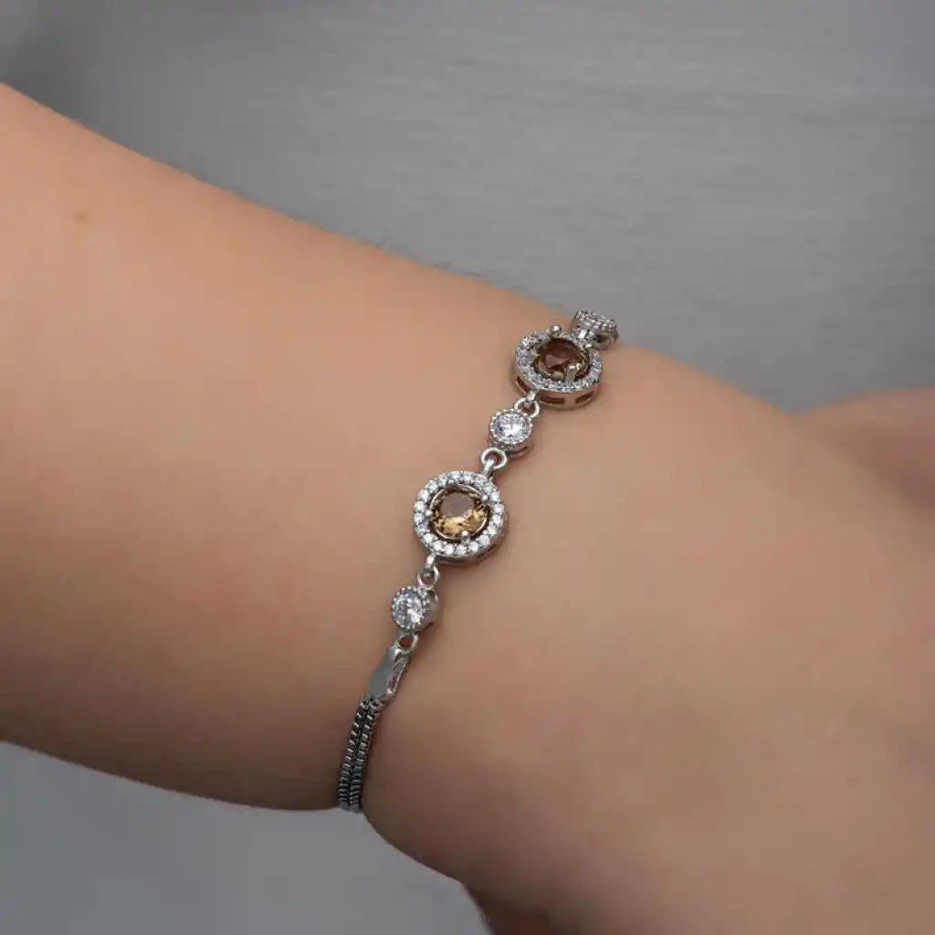 Gümüş ürünlerde her zevke hitap eden bileklik modelleri yer alıyor... Geleneksel tarzda bileklik sevenler için daha sade ve otantik motiflerin yer aldığı modeller de koleksiyonda zevkinize sunuluyor. Gösterişli takılar tercih edenler için opal, firuze, mistik topaz, zultanit gibi renkli taşlardan oluşan modellere yer veriliyor. Gümüş bileklik tasarımları, sade ve düz renk tercih edilen kıyafetlere hoş bir hava katıyor. Stilinizi vurgulayabilmenin ve dışarıya yansıtabilmenin en zarif yollarını sizlere sunan bileklik modellerini inceleyerek sizler de günün her anında kullanabileceğiniz bileklik modellerine sahip olabilirsiniz. Gümüş zultanit taşlı kadın bileklik 925 ayar gümüşten imal edilmiştir. Bu bileklik üzerine rodyum kaplama yapılmıştır. Rodyum kaplama yapılan ürünler parlaklığını uzun süre muhafaza eder. Üzerinde bulunan taşlar zirkon ve zultanittir. Tüm gümüş kadın bileklik modellerinde olduğu gibi gümüş zultanit taşlı kadın bileklik modeli de el emeği ile üretilmiştir. Bilekliğin uzunluğu 22 cm"dir. Gümüş ve değerli taşlar nedeniyle belirtilen ortalama ürün ağırlığında ± %10 sapma olabilmektedir.