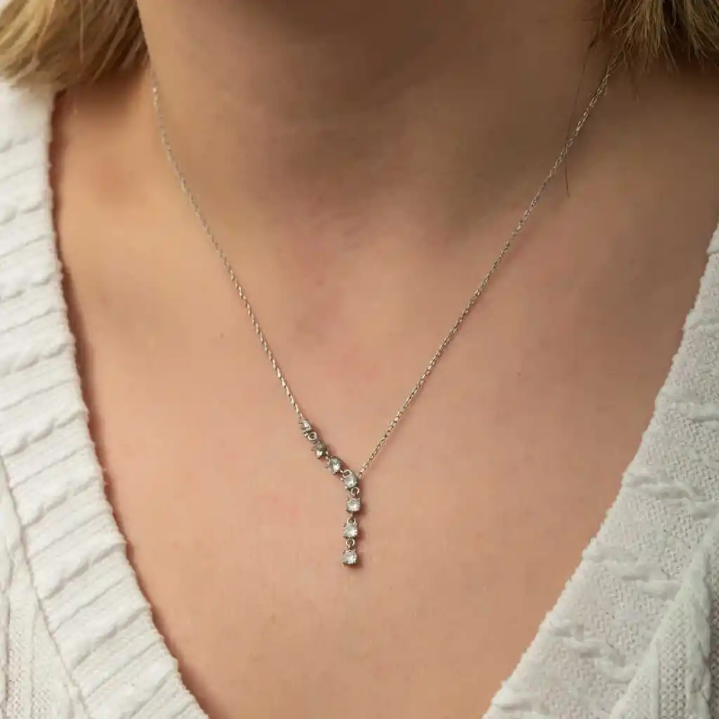 Gümüş Zirkon Sıra Taşlı Kadın Kolye
