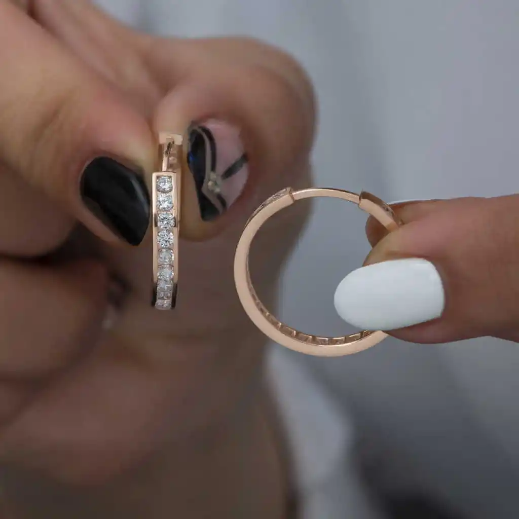 Şık ve spor bu halka küpeyi gündelik hayatta çok rahatça kullanabilirsiniz. Gümüş halka kadın küpe; doğum günü hediyesi, sevgililer günü hediyesi veya annelere hediye olarak özel günlerde tercih edilebilecek mükemmel bir seçenektir. Gümüş halka kadın küpe; 925 ayar gümüşten imal edilmiştir. Gümüş üzerine rose kaplama yapılmıştır. Rose kaplama yapılan gümüş halka kadın küpe parlaklığını uzun süre muhafaza eder ve oksitlenmesi gecikir. Tüm kadın küpelerde olduğu gibi gümüş zirkon taşlı halka kadın küpe de el emeği ile üretilmiştir. Gümüş ve değerli taşlar nedeniyle belirtilen ortalama ürün ağırlığında ± %10 sapma olabilmektedir.