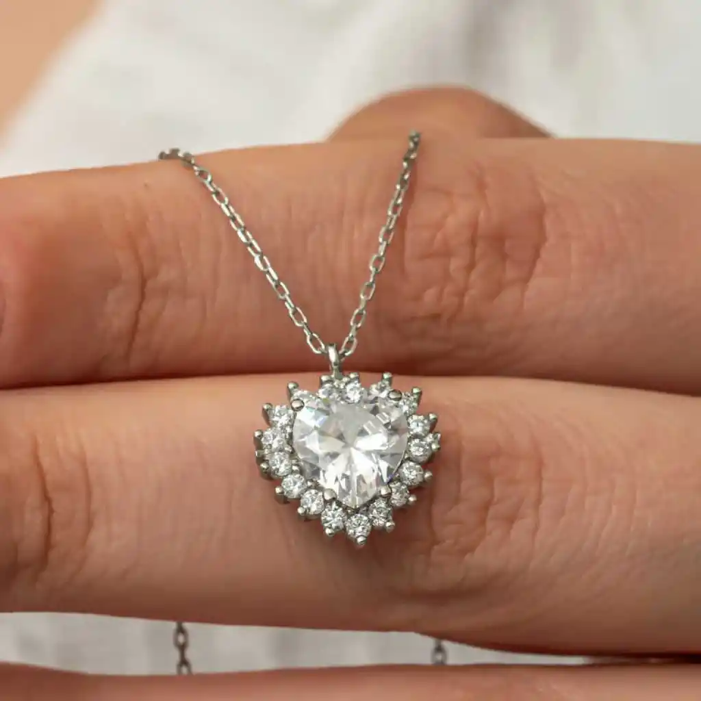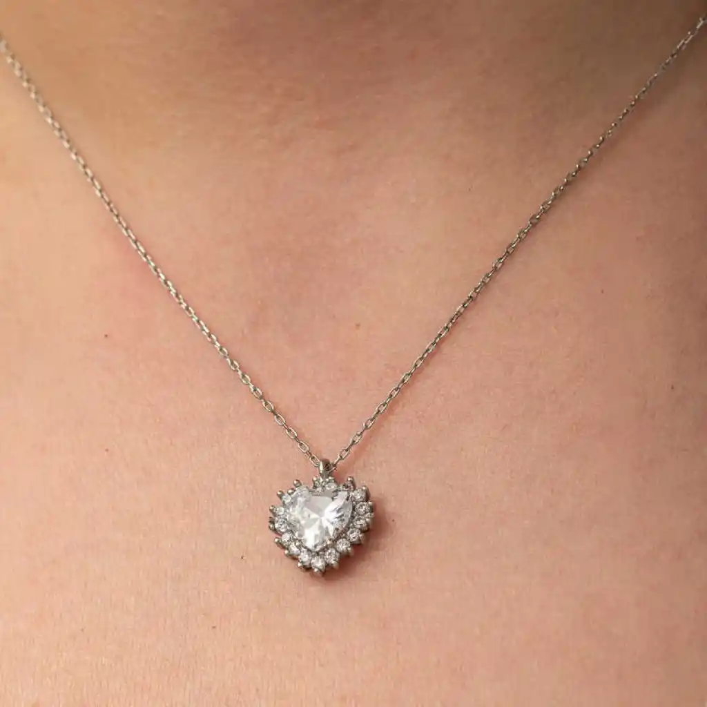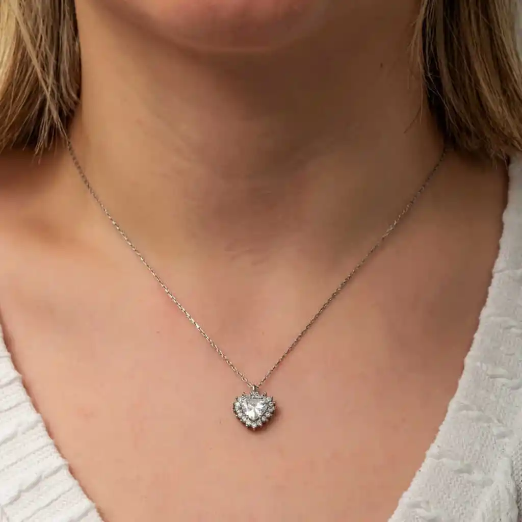 Gümüş Zirkon Taşlı Kalp Kadın Kolye