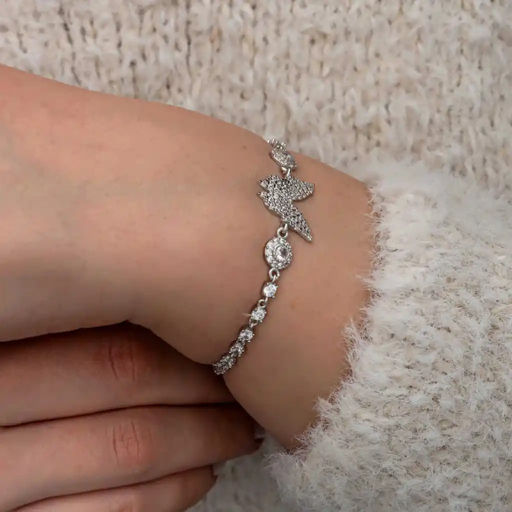 Gümüş Zirkon Taşlı Kelebek Kadın Bileklik