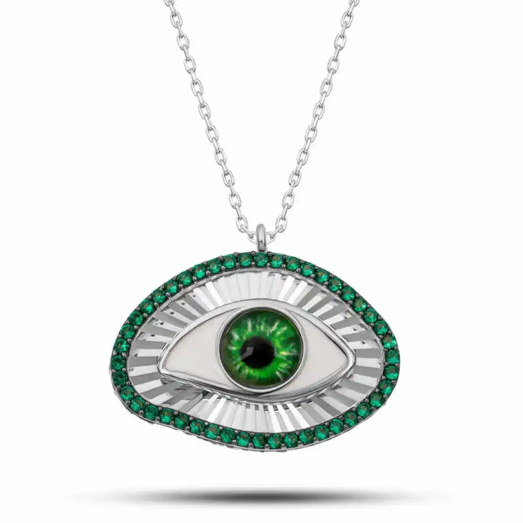 Gümüş Zümrüt Göz Koruyucu Kadın Kolye