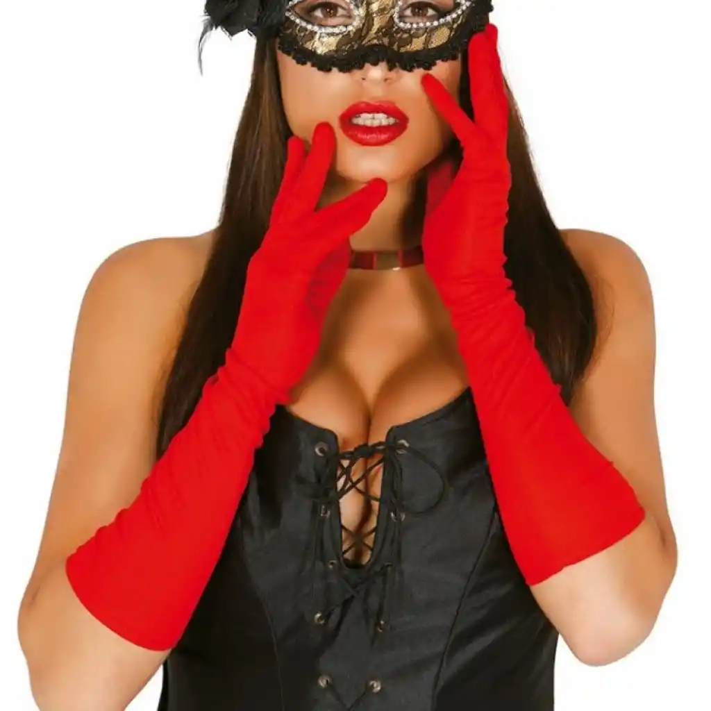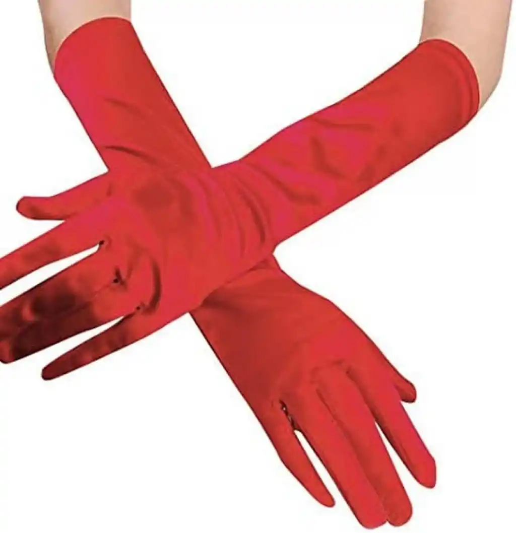 Kırmızı Renk Dirseğe Kadar Uzun Kumaş Eldiven 40 cm