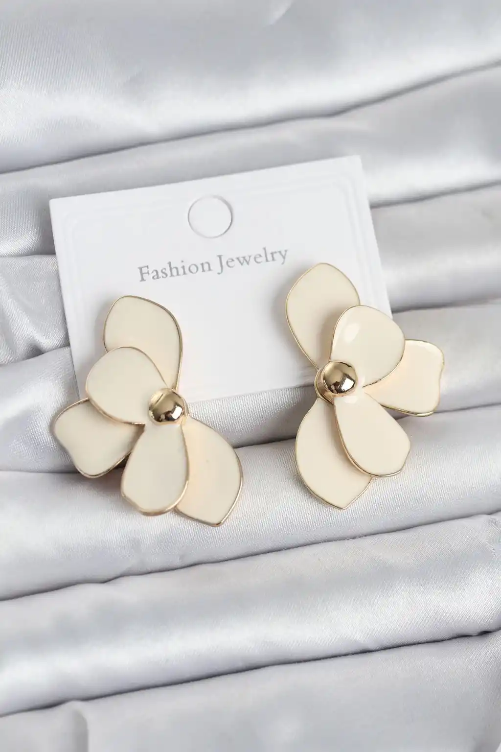 Krem Mineli Lotus Model Pirinç Kadın Küpe
