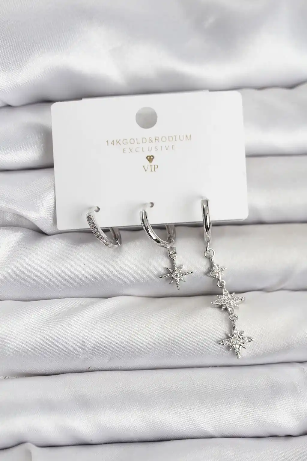 Kutup Yıldızı Model Gümüş Renk Pirinç 3'lü Kadın Küpe Seti