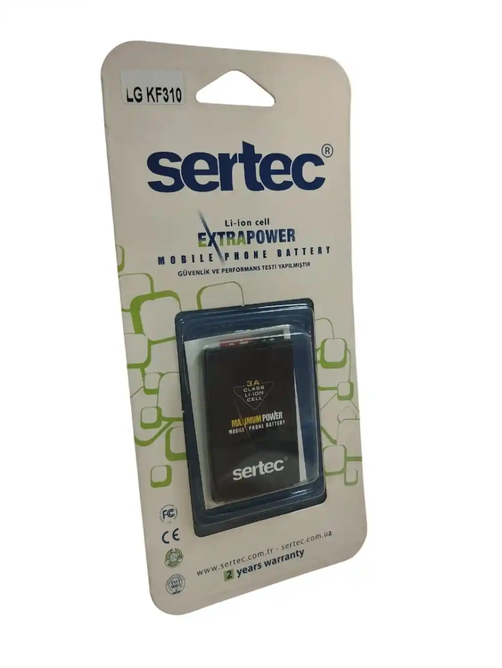 MARKA: SERTEC UYUMLU MODELLER: LG KF310 / LGIP-411A Uyumlu Batarya VOLTAJ: 3,7 V. KAPASİTE: 1.230 mAh. MENŞEİ: ÇİN