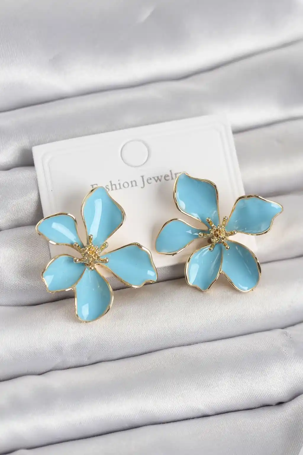 Mavi Mineli Çiçek Model Pirinç Kadın Küpe