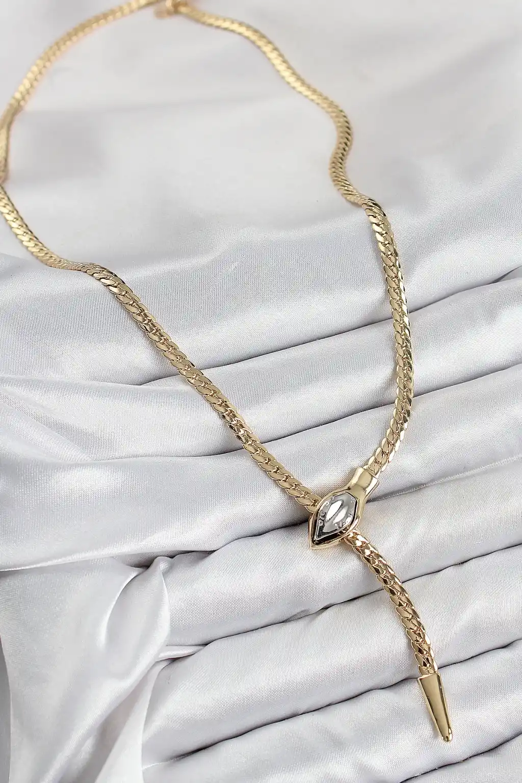 Pirinç Asansörlü Yılan Model Gold Renk Kadın Kolye