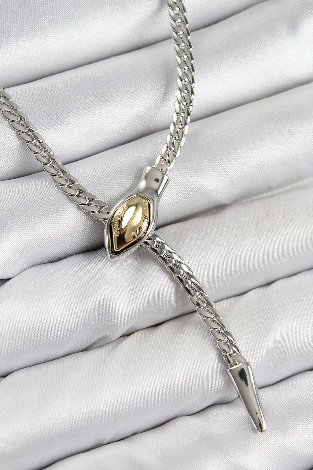 Pirinç Asansörlü Yılan Model Gümüş Renk Kadın Kolye