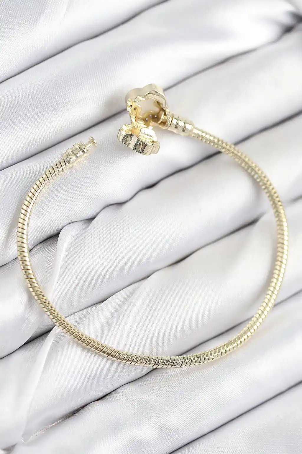 Pirinç Charm Zirkon Taşlı Yonca Model Gold Renk Kadın Bileklik