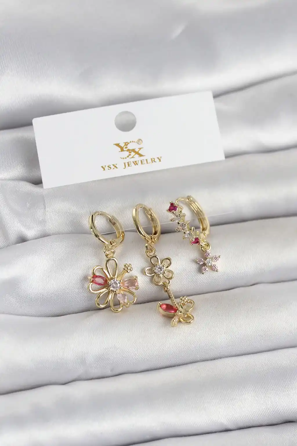 Pirinç Gold Renk Çiçek Model 3'lü Kadın Küpe