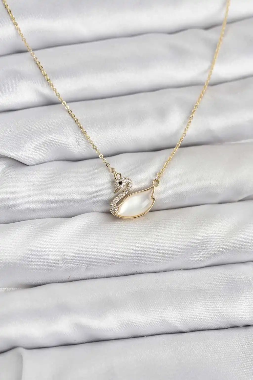 Pirinç Gold Renk Kuğu Model Kadın Kolye