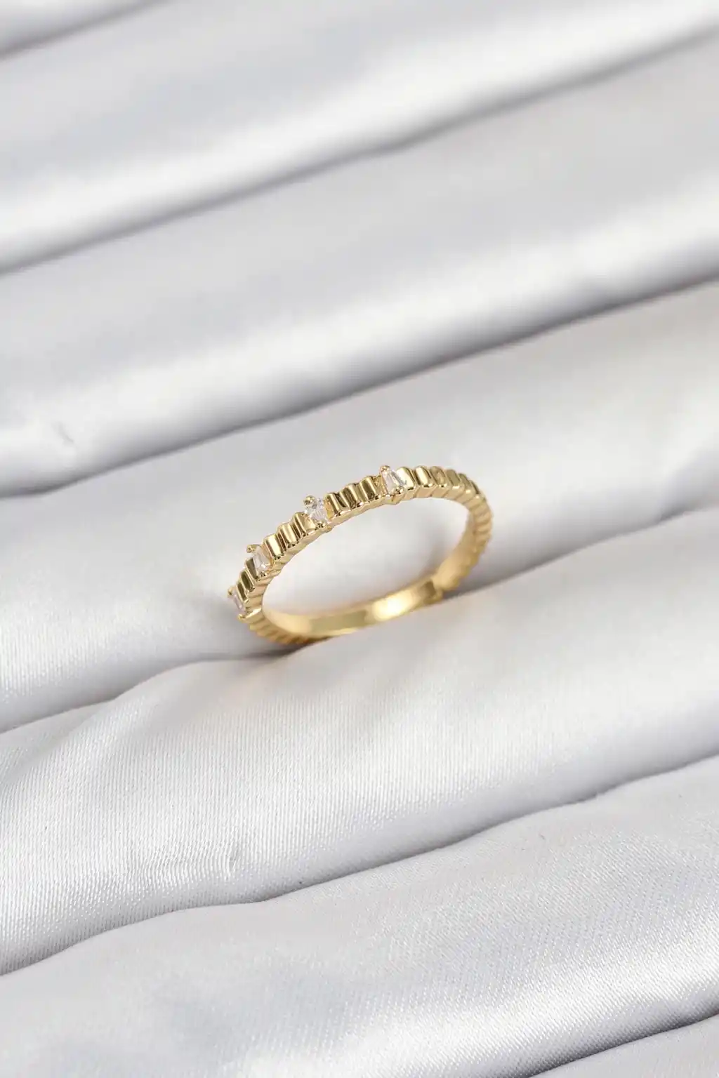 Pirinç Gold Renk Lazer Kesim Kadın Yüzük