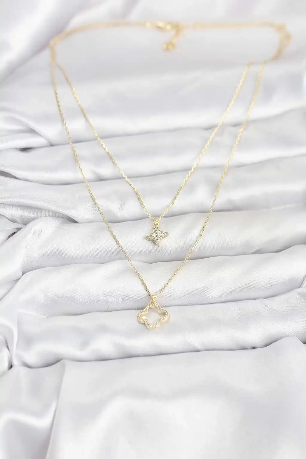 Pirinç Gold Renk Yonca Model 2'li Kadın Kolye