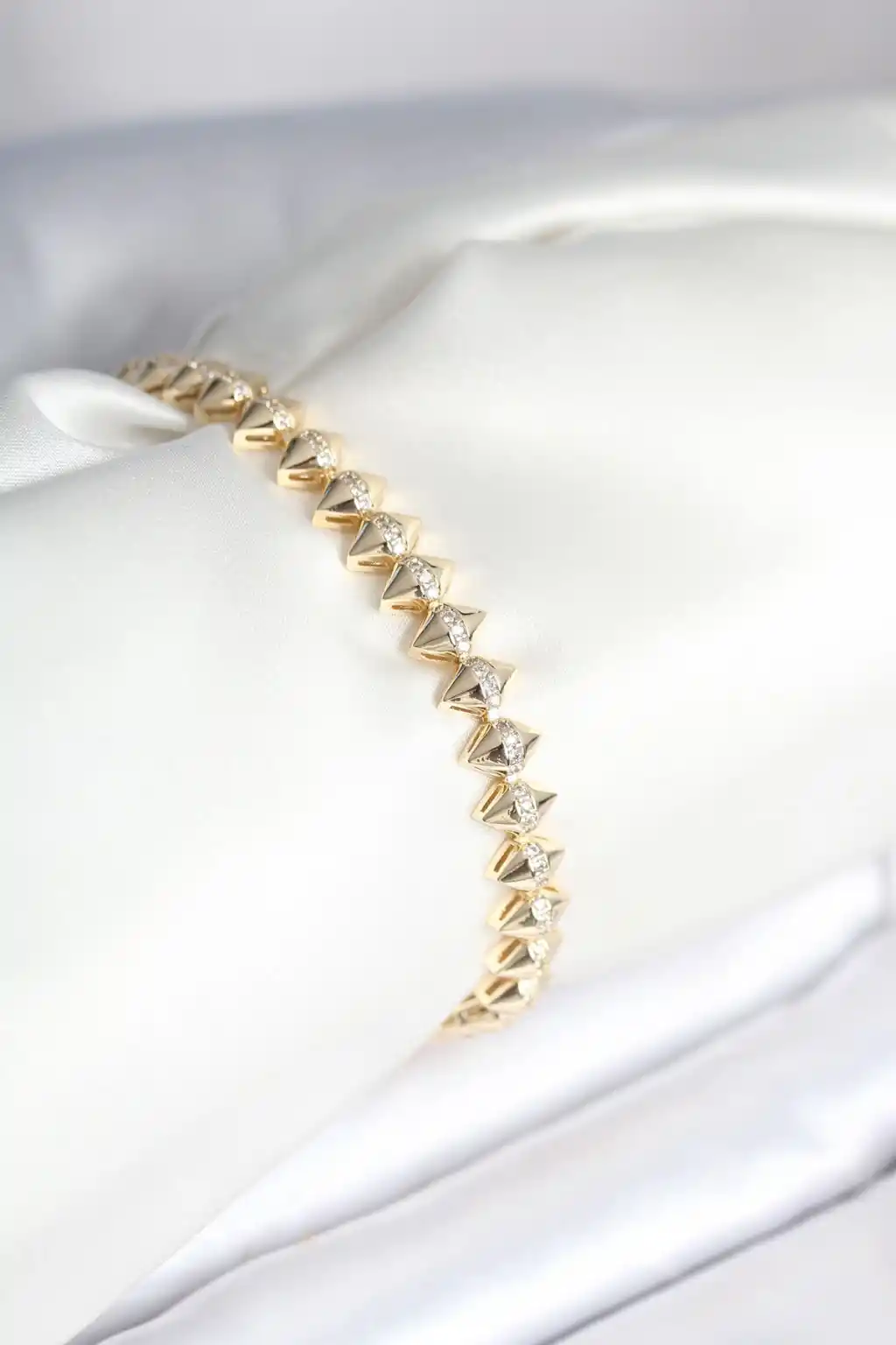 Pirinç Gold Renk Zirkon Taşlı Baklava Model Kadın Bileklik
