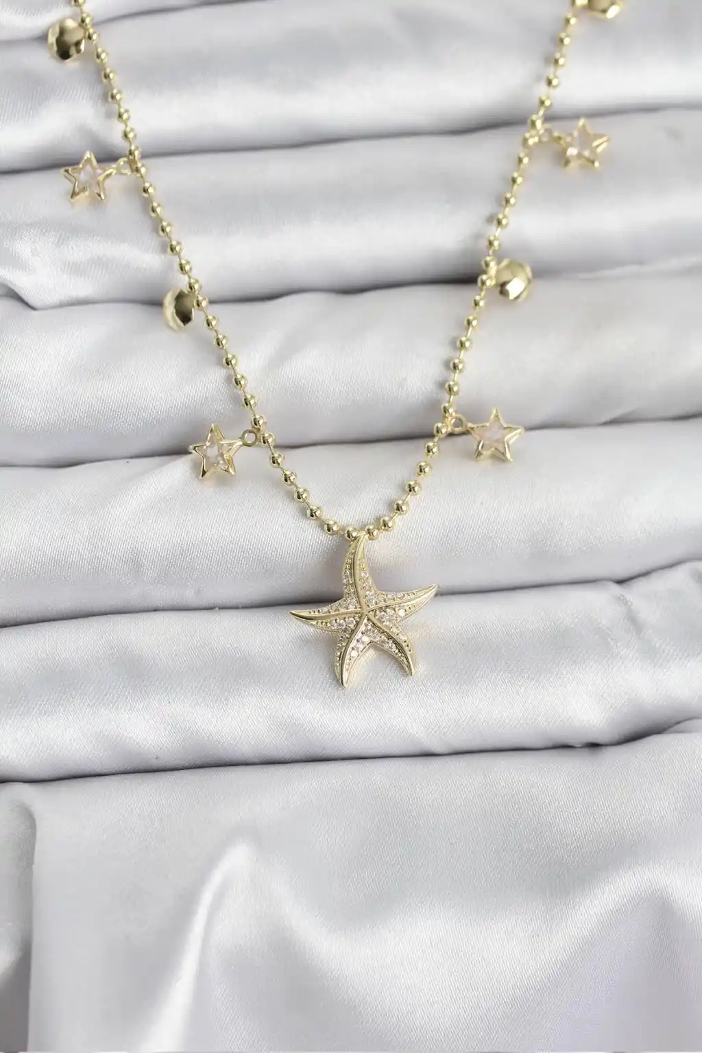 Pirinç Gold Renk Zirkon Taşlı Deniz Yıldızı Model Kadın Kolye