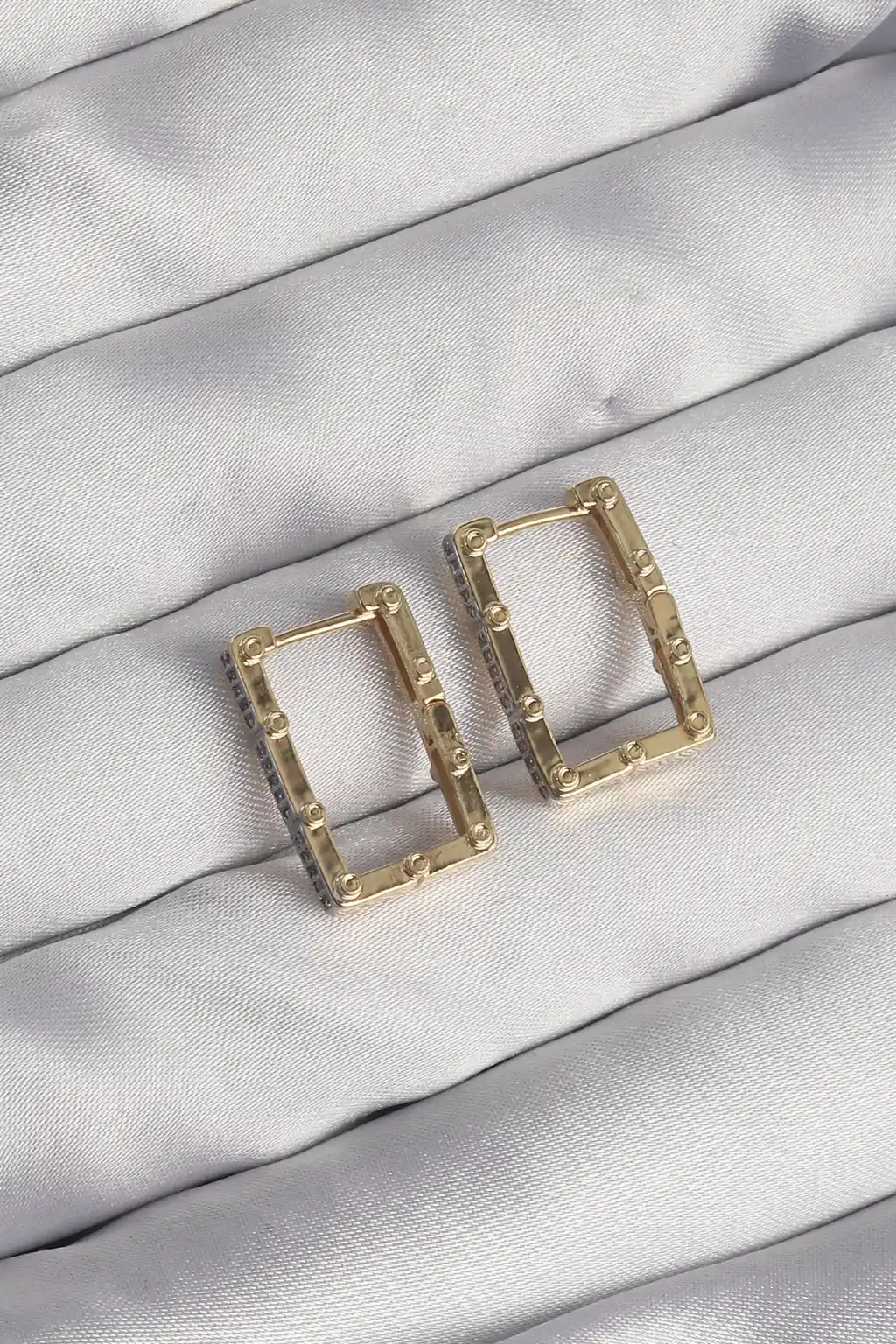 Pirinç Gold Renk Zirkon Taşlı Dikdörtgen Model Seranay Küpe
