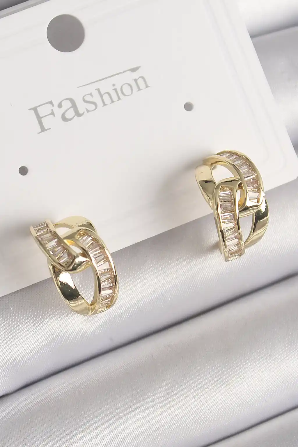 Pirinç Gold Renk Zirkon Taşlı Zincir Model Kadın Küpe