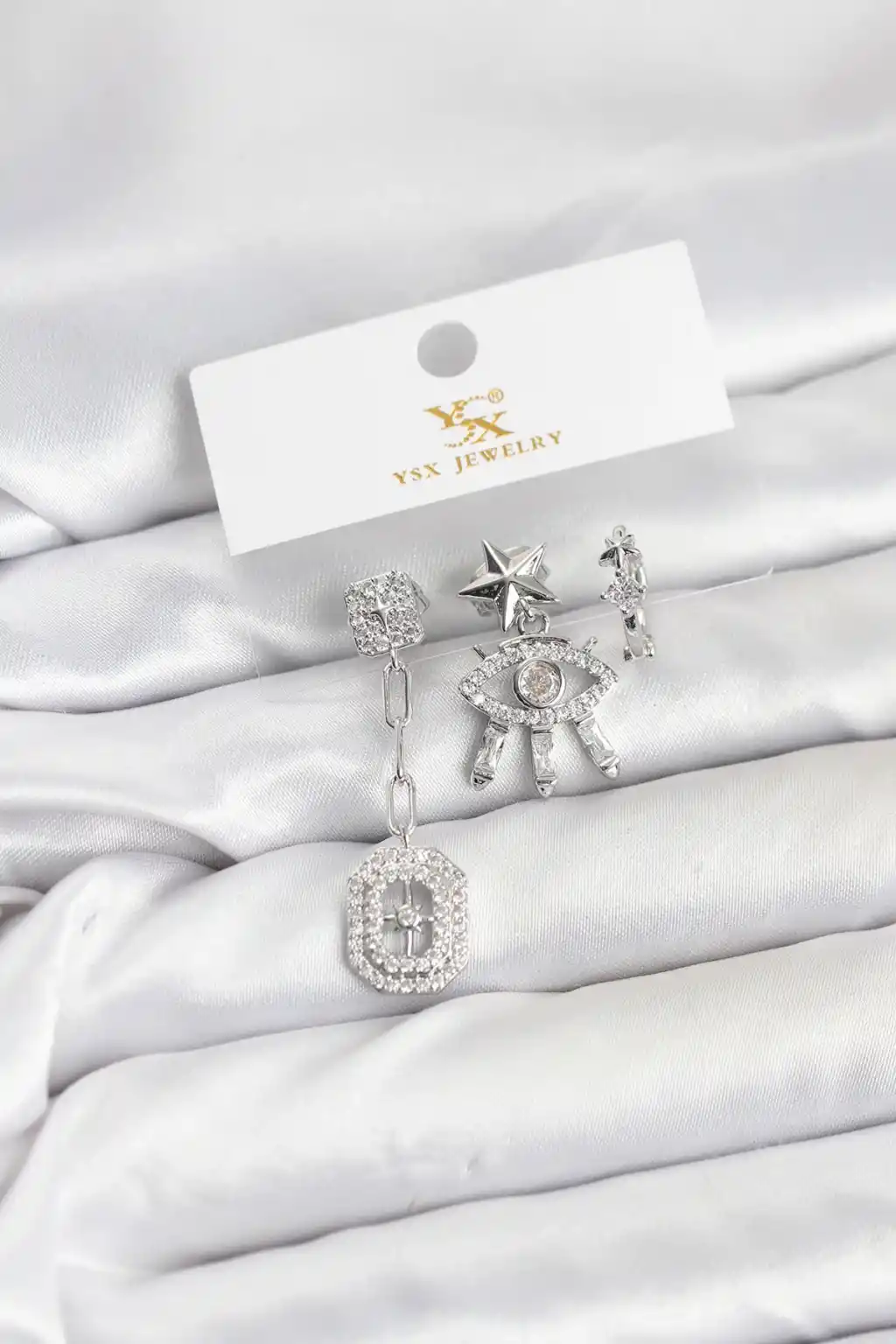 Pirinç Gümüş Renk Göz ve Kutup Yıldızı Model YSX Trio Küpe Seti