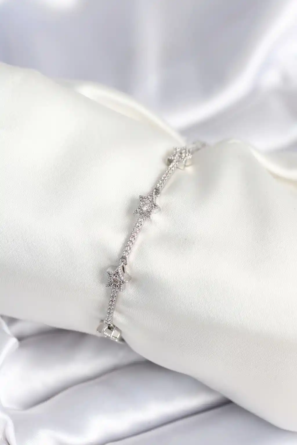 Pirinç Gümüş Renk Halley Yıldız Model Kadın Bileklik