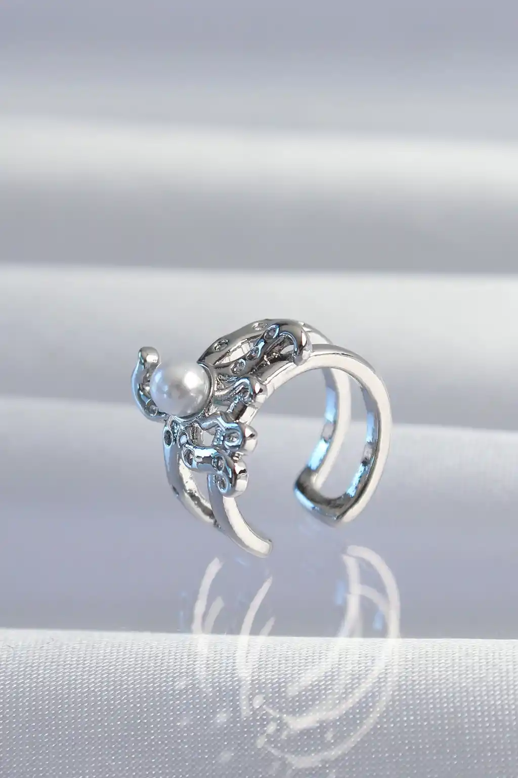 Pirinç Gümüş Renk İncili Ahtapot Earcuff Küpe