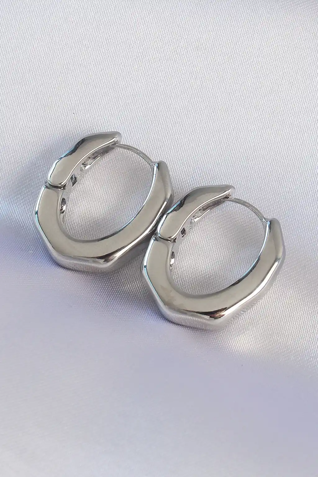 Pirinç Gümüş Renk Kalın Kemik Model Küpe