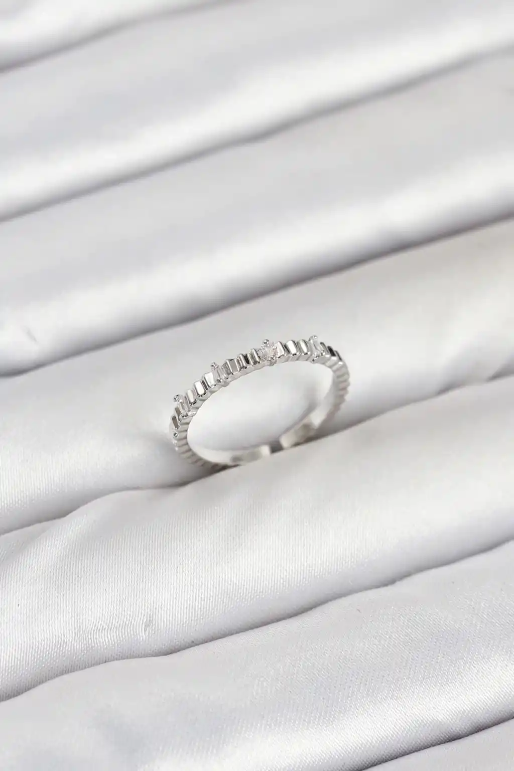 Pirinç Gümüş Renk Lazer Kesim Kadın Yüzük