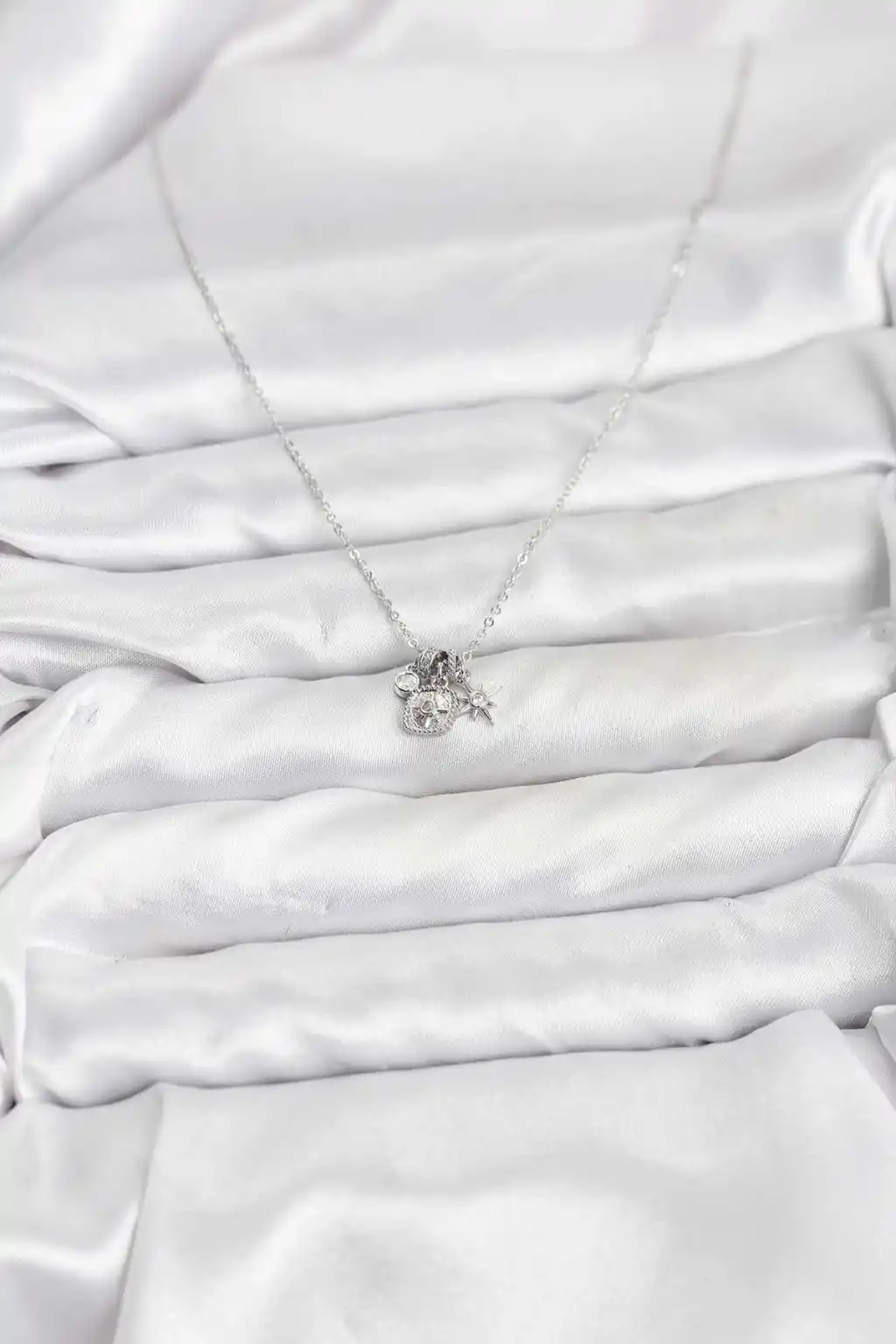 Pirinç Gümüş Renk Minimal Charmlı Kadın Kolye
