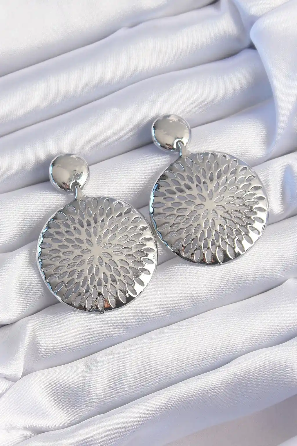 Pirinç Gümüş Renk Oval İşlemeli Küpe