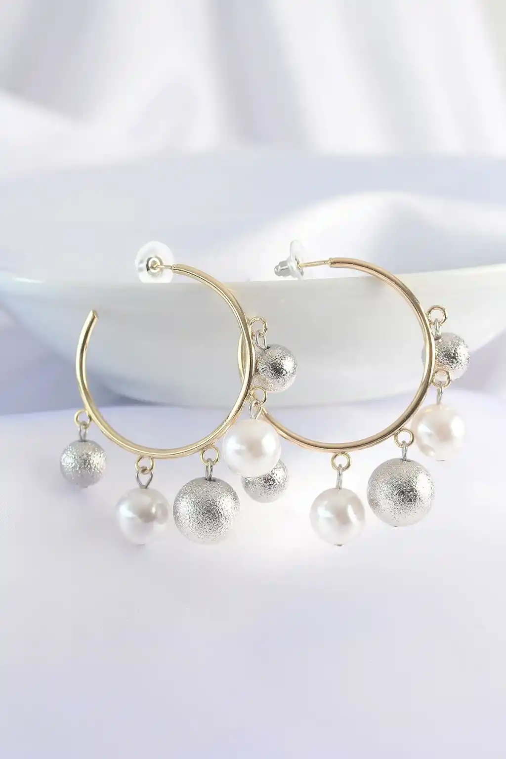 Pirinç Gümüş Renk Topçuk Model Gold Renk Halka Küpe