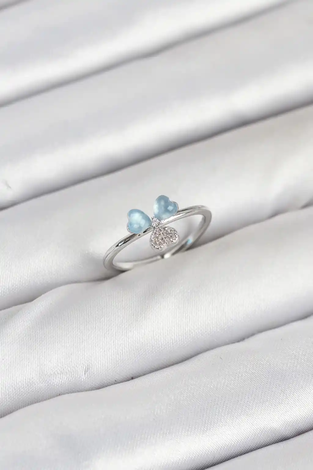 Pirinç Gümüş Renk Yonca Model Kadın Yüzük