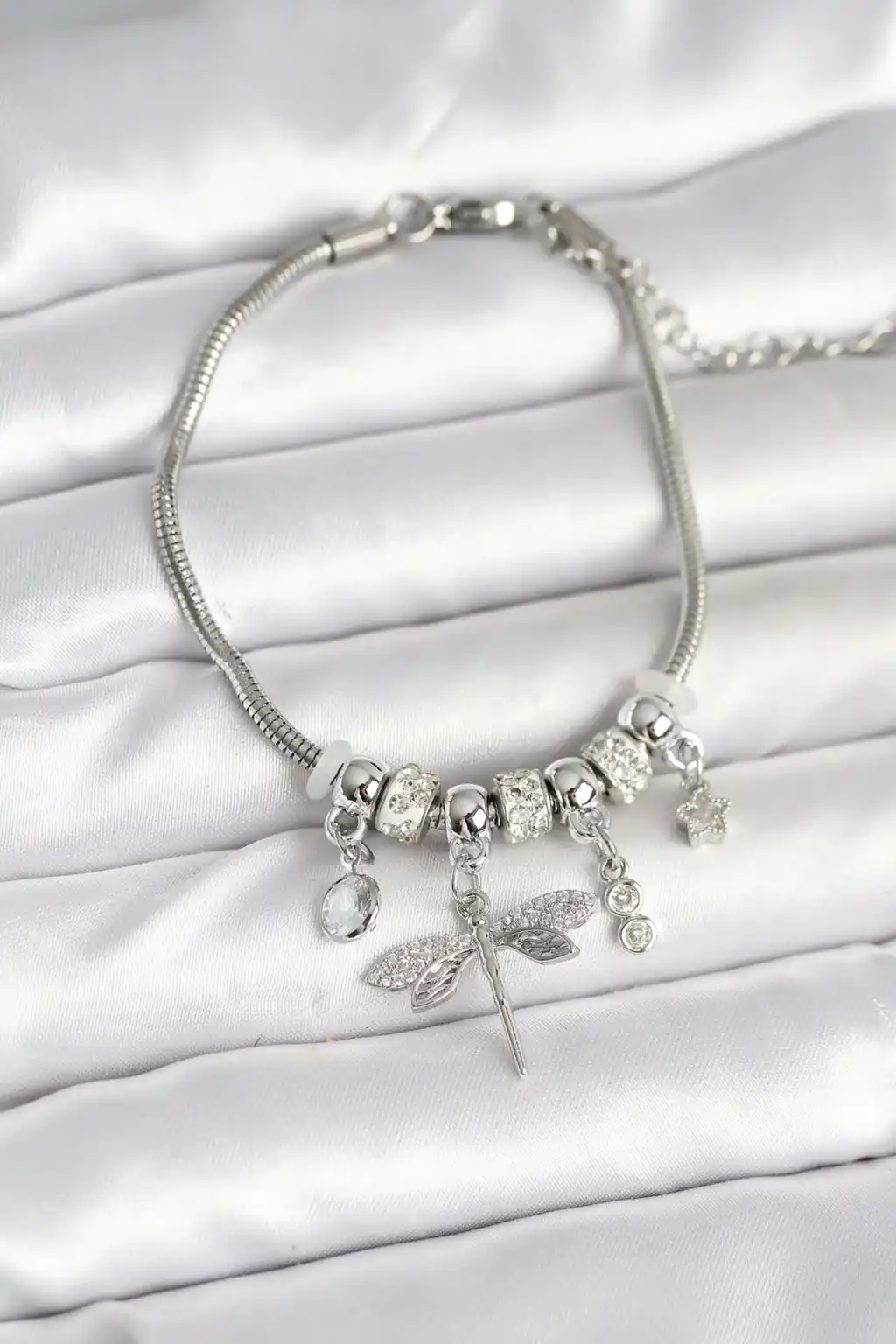Pirinç Gümüş Renk Yusufçuk Charmlı Kadın Bileklik