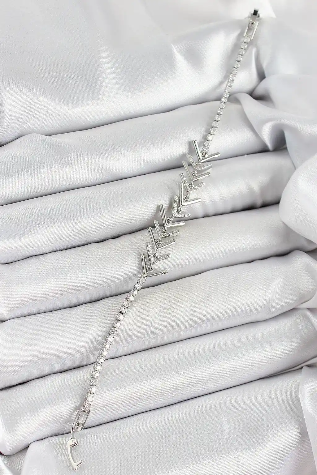 Pirinç Gümüş Renk Zirkon Taşlı Balık Sırtı Kadın Bileklik