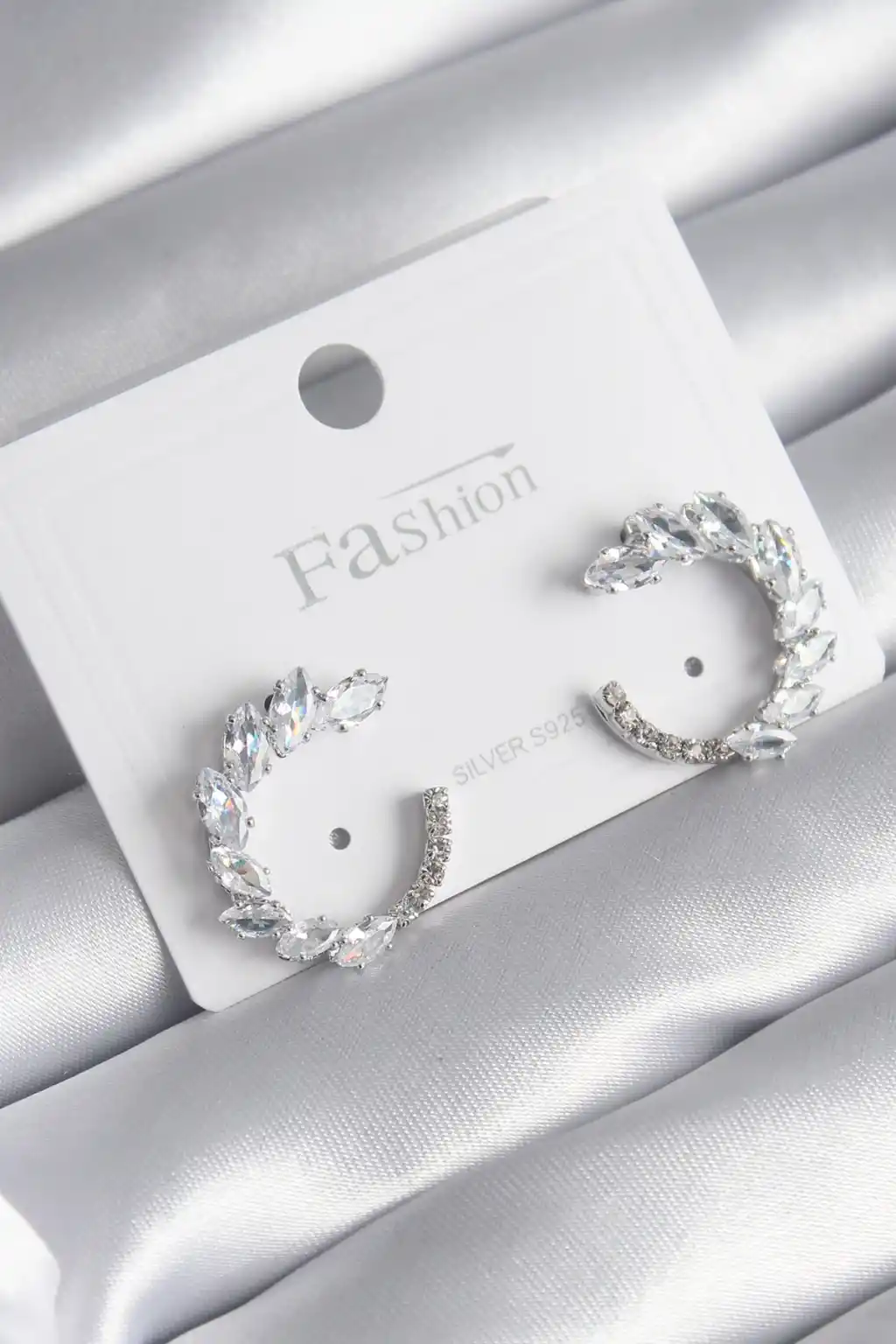Pirinç Gümüş Renk Zirkon Taşlı Kadın Küpe