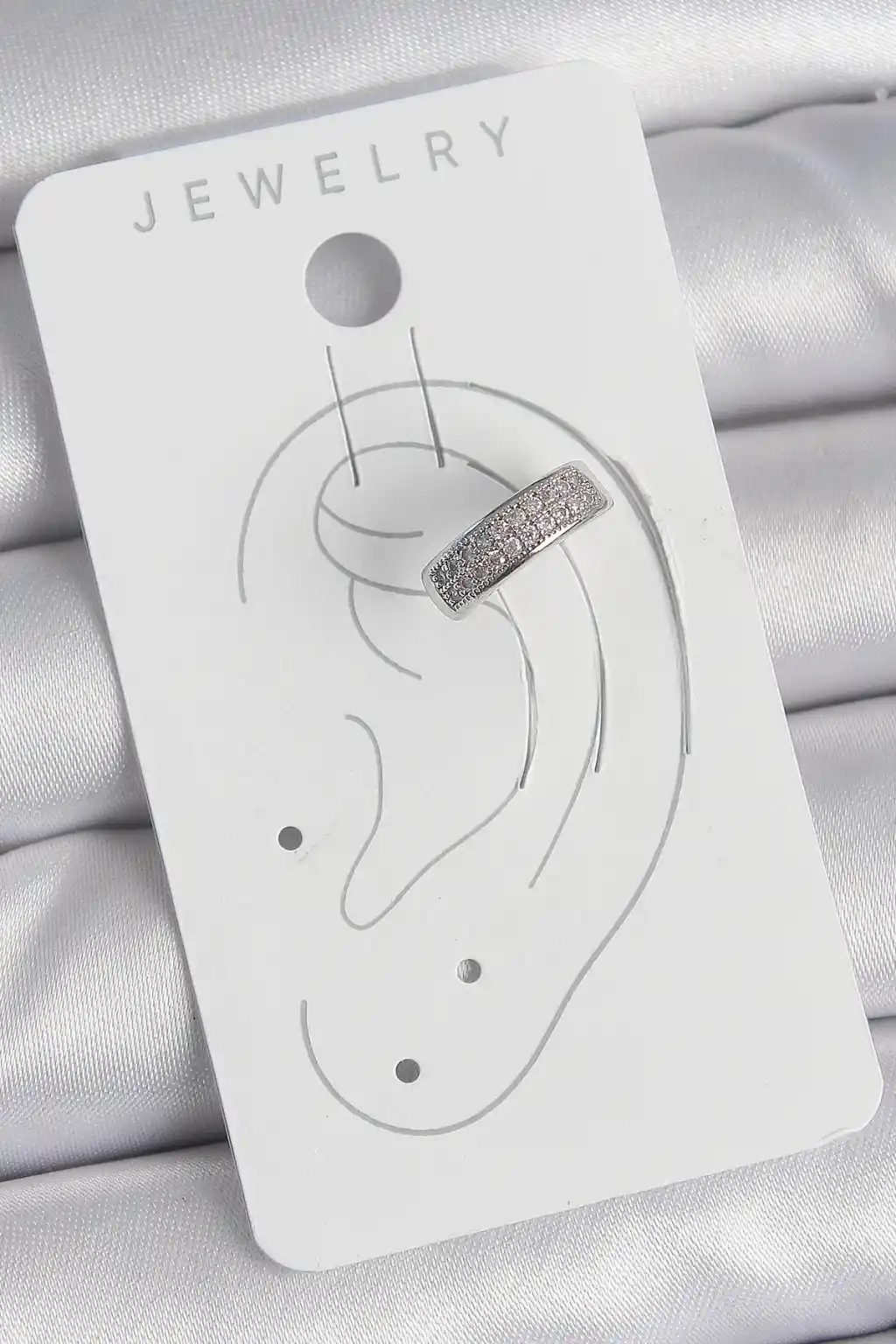 Pirinç Gümüş Renk Zirkon Taşlı Kıkırdak Model Kadın Küpe