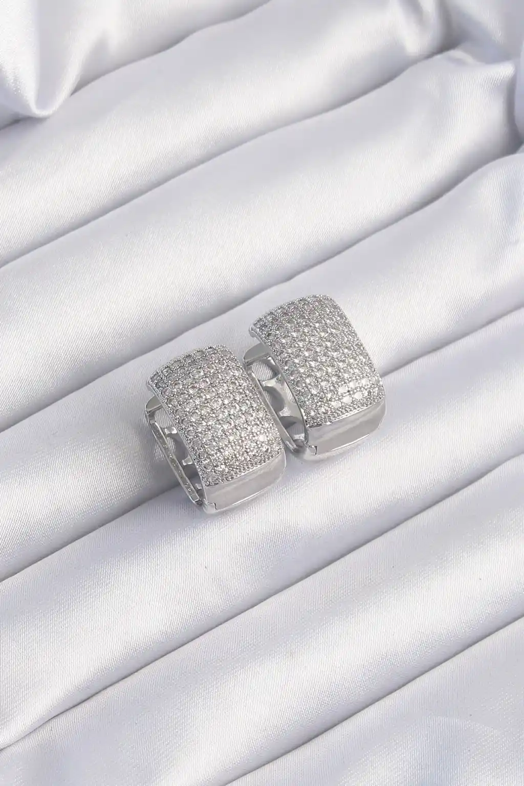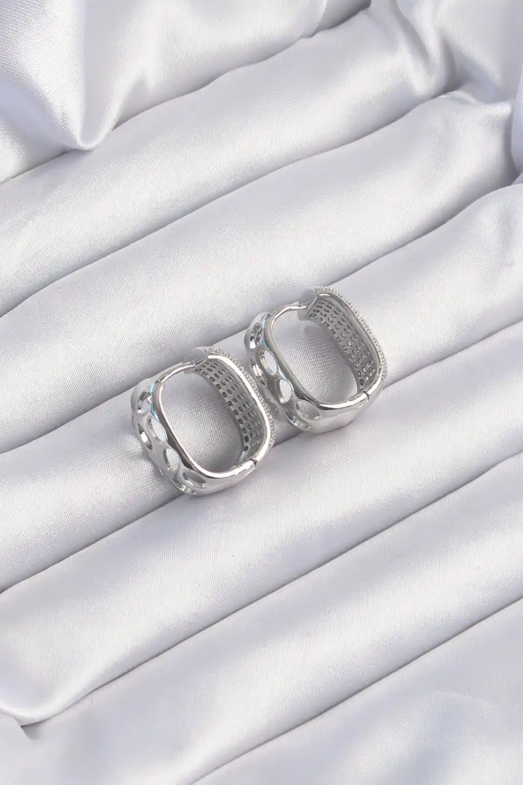 Pirinç Gümüş Renk Zirkon Taşlı Minimal Halka Küpe